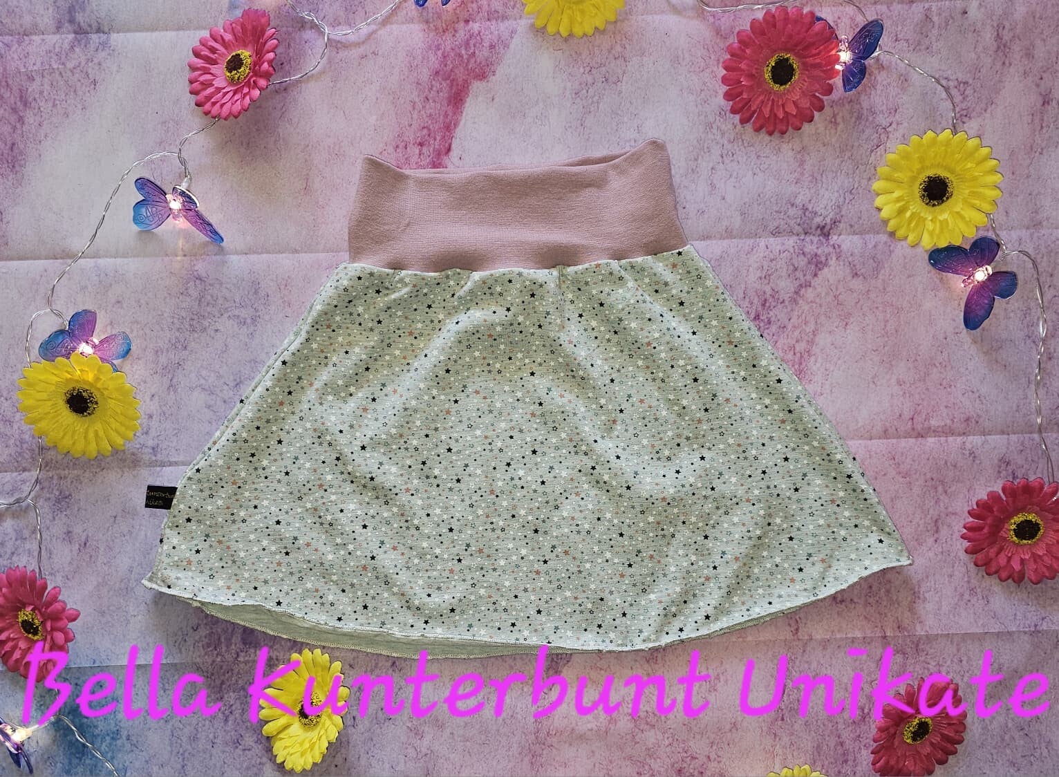 Ein wunderschöner, handgefertigter Rock aus weichem Jersey in dezentem Design. Der helle Grund mit vielen kleinen Sternchen wirkt schlicht, modern und gleichzeitig verspielt – perfekt für kleine Träumerinnen.